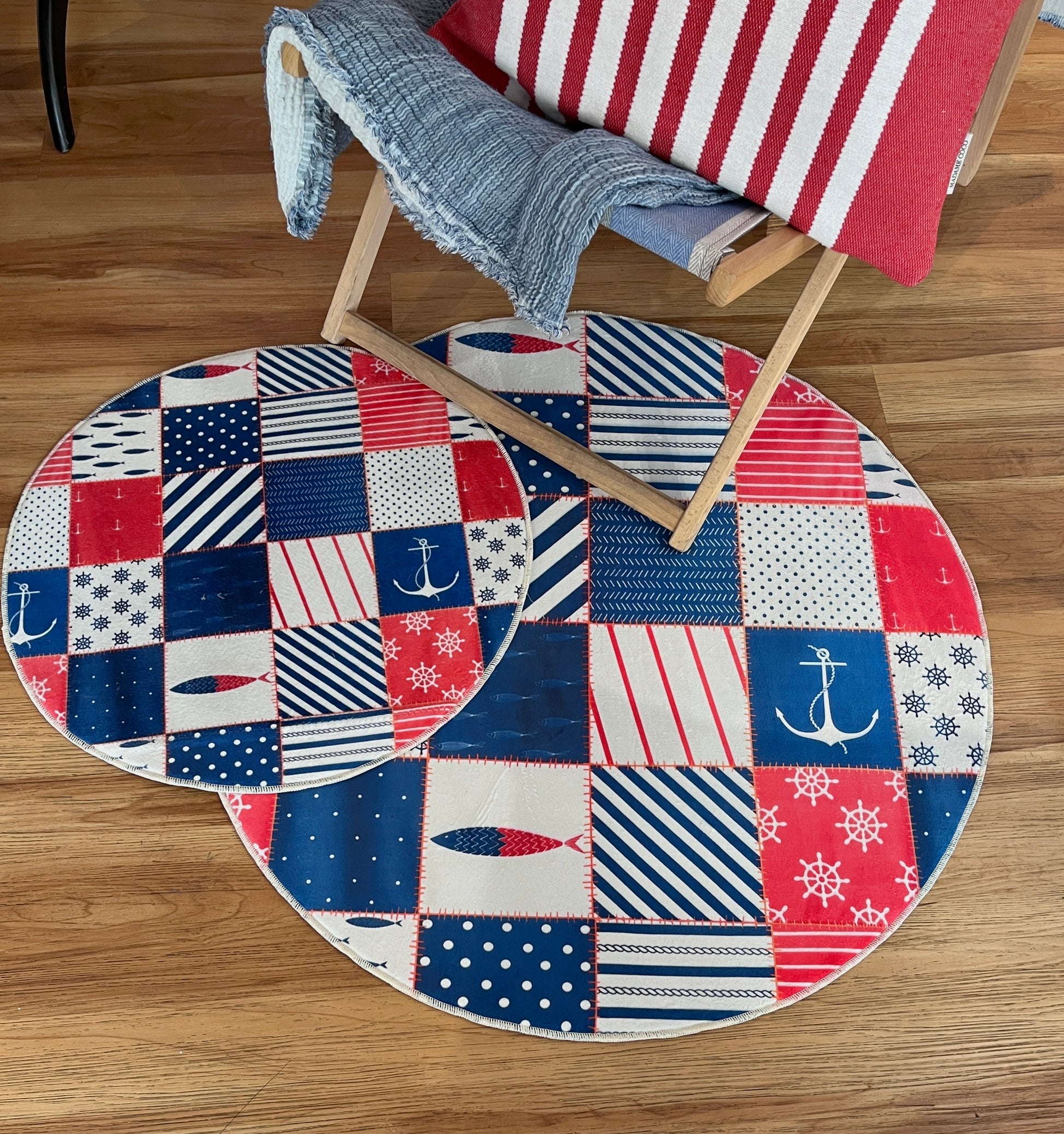 Hole dir den Charme der Küste in dein Zuhause mit unseren wunderschönen nautischen Patchwork-Teppichen! Diese einzigartigen Teppiche sind eine perfekte Ergänzung für jedes Zimmer, das eine maritime Note vertragen kann – sei es das Wohnzimmer, Schlafzimmer, Kinderzimmer oder sogar ein Badezimmer.